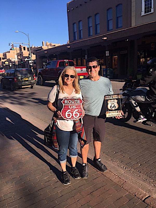 THROUGH THE CENTURIES --- ABOVE - BELOW PHOTOS--- THE PLAZA, WHERE ROUTE 66 USED TO PASS THROUGH. YES THIS FAMILY IS STANDING ATOP RT66. THIS WAS A GREAT TOUR. THIS TEXAS FAMILY, ARE PROUD OF THERE HERITAGE AND ASKED SOME GREAT QUESTIONS ON THEIR SAFARI. I LIKE THEIR FLAG ------ DON'T TREAD ON ME! VIVA TEXAS! THE LAND OF PATRIOTS !