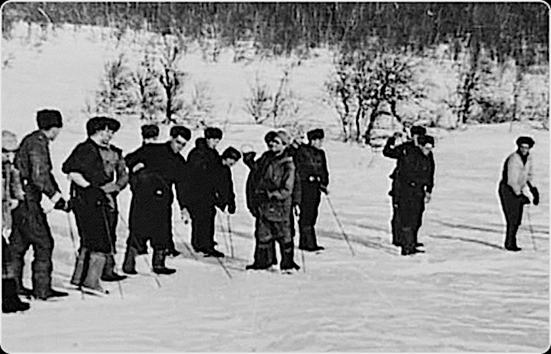 DYATLOV-INCIDENT --- ABOVE: the group of skiers get ready to leave civilization and trek out into the wilds on their cross country snow hike. BELOW & DOUBLE BELOW: A happy group -- they had no idea that a terrible death was ahead of them. The DYATLOV-INCIDENT -- happened on FEBRUARY 2, 1959 --- but the tragedy is still an enigma/ evidence has not been found or has been repressed.