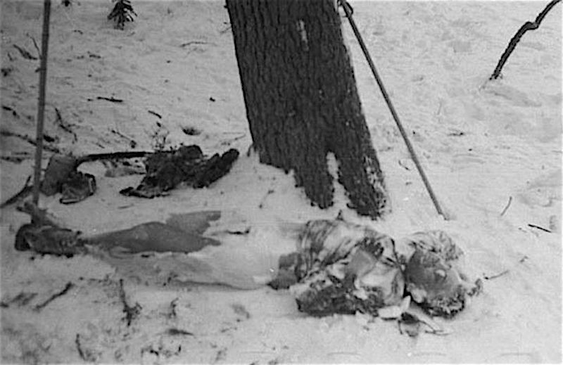 DYATLOV-INCIDENT /BELOW: A BLOW UP of the TREE TRUNK or is it a RUSSIAN BIG FOOT? Most would agree it is a shadow + tree trunk.