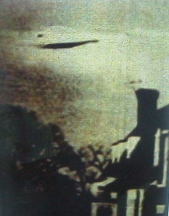 FAR LEFT PHOTO-- A 1944 PHOTO OF A UFO OVER ENGLAND. THE PHOTO HAS BEEN AROUND FOR AGES, MANY PEOPLE THINK IT IS A FAKE. THE PICTURE AT THE BOTTOM RIGHT--No idea, this UFO picture has been around for sometime --a snapshot of an odd FOO fighter off the wing.