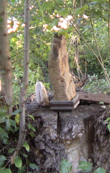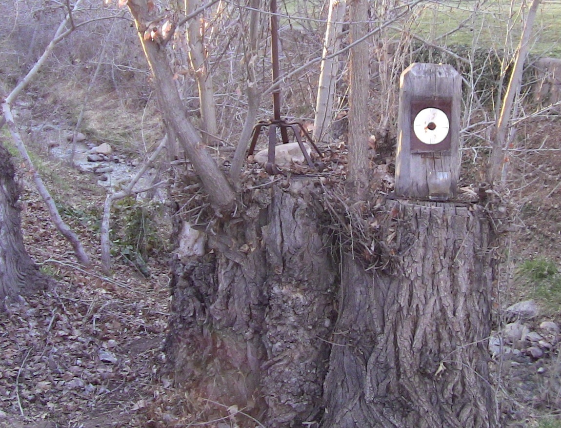 STRAIGHT ACROSS this stream, or straight across from these black magic ornaments, on the LA LLORONA PATH or WITCH PATH --BLAIR WITCH PATH--- is a stump that creeps people out. The stump had all kinds of stuff on it, that does not look inviting. On many of my tours, there has been remarks that the stump or occult art work or occult objects are something out of THE BLAIR WITCH movie. In this area I am usually asked to go over the story of La Llorona and other wtich stories of summonings.