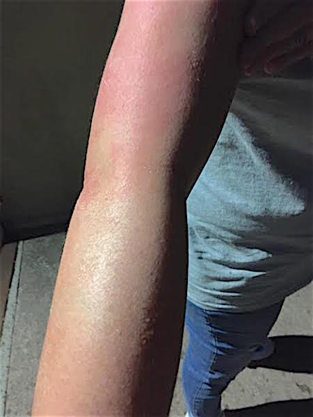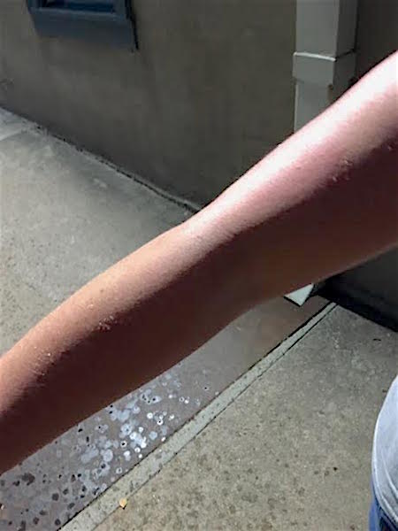 The end result was that one person on tour got CHICKEN FLESH! --- This lady in the picture felt something by her or around her, this energy was ghostly or cold. Take a look at the photos. Not only did her arm break out into CHICKEN FLESH but also, the marks on her arm were the result of something not seen, applying a lot pressure to her arm, as it grabbed her. Then the energy in a few seconds was gone.