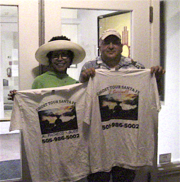 On your tour -- bring your shadow chaser gadgets --- at times and it is rare but weird things have happened on Al Pacheco's ghost safari -- as in energies registered on ghost machines- got boxes, or a presences is felt, or even a ghosty entity is photographed -- (Orb - Globular - Beam -Bodily). ON the rarest -- rarest of occasions, people have been pushed or had a hard time breathing -- along with palpitations of the heart at certain haunted SANTA FE locales. As stated this is very rare -- but it has happened... GOT GUTS -- tour with ALLAN PACHECO -- it is your private tour -- you can ask as many questions as you want 505-986-5002 or 505-231-1336 -- IN certain worlds of the paranormal -- be it key note speaker realm or paranormal radio shows --- tour guide ALLAN has been labeled a DOCENT of the PARANORMAL.