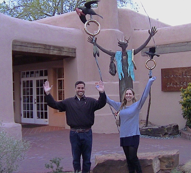 BELOW: Daytime GHOST TOURS SANTA FE NEW MEXICO safari, a fun time was had. Note the statue behind Charles & Melanie -- DAY or NIGHT --- 505-986-5002 PRIVATE TOUR LED by ALLAN PACHECO.