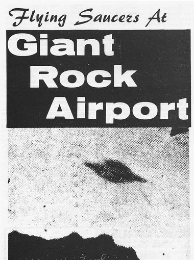 INTERPLANETARY-SPACECRAFT-CONVENTION -- (THE-HISTORY) -- At a desert airfield that was located by one of the strangest rock formations in the world, a UFO convention was held. This shindig was the brainchild of George Van Tassel, who claimed to be a UFO contactee. These conventions were "G" rated for the most part. The convention attracted the believers, people with evidence, lunatics, con-men, con-women, researchers, authors, you name it, they showed up in the desert through the years to attend this UFO WOODSTOCK. The location for these meetings was in the middle of the Mojave Desert. There were few comforts to be found at the GIANT ROCK, yet through the years thousands of people tracked out to the year event -- INTERPLANETARY-SPACECRAFT-CONVENTION to hear UFO luminaries speak on the subject. Due to where the powwow was located at, only the very inquisitive or adventurous would make the journey to hear the lectures. In other words these gatherings were attended by people who were looking for answers and had moxie.