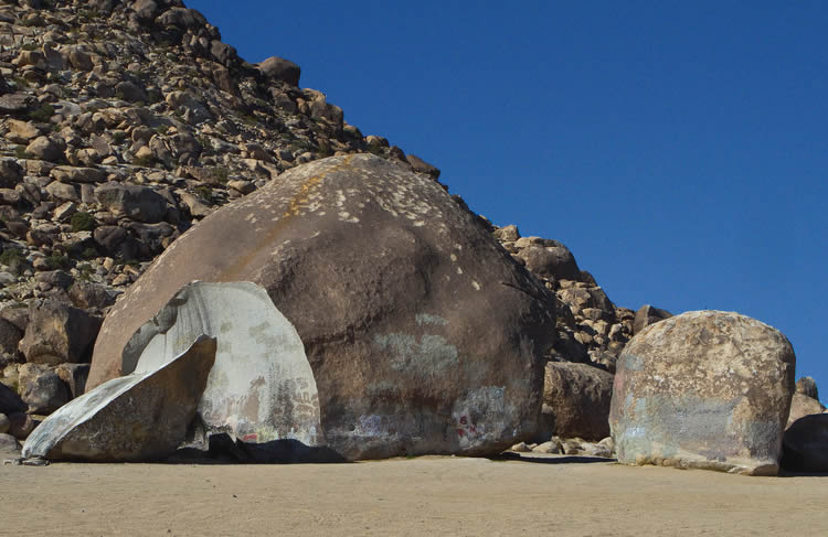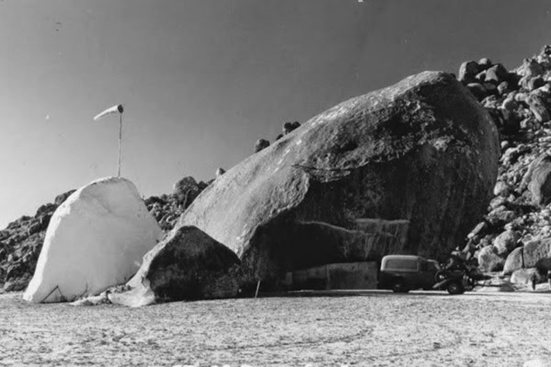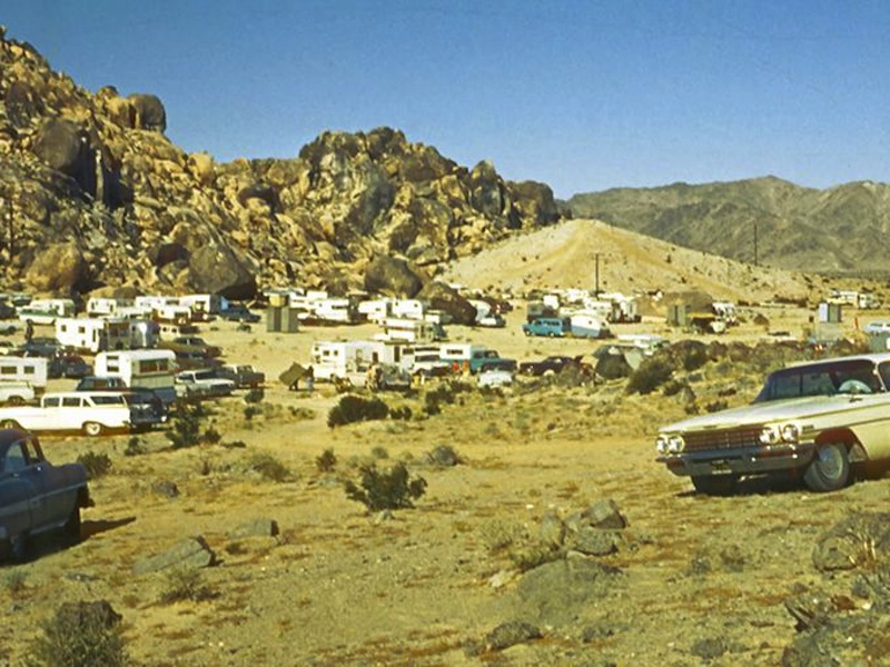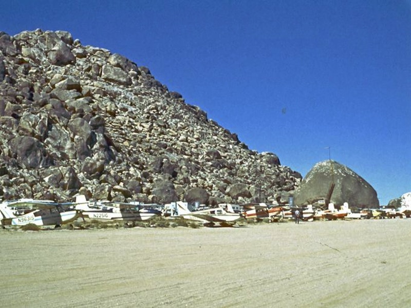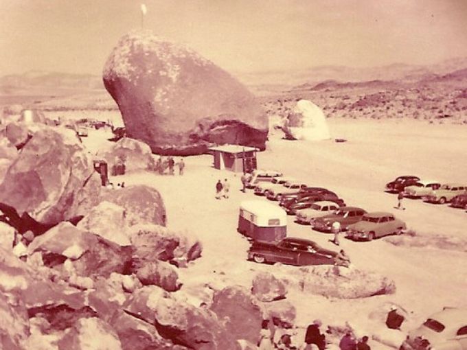 In the 1930s the Giant Rock was where a very rough airfield was located. It is not kown exactly when a German eccentric/prospector, Frank Critzer squatted at the Giant Rock, which was government land.