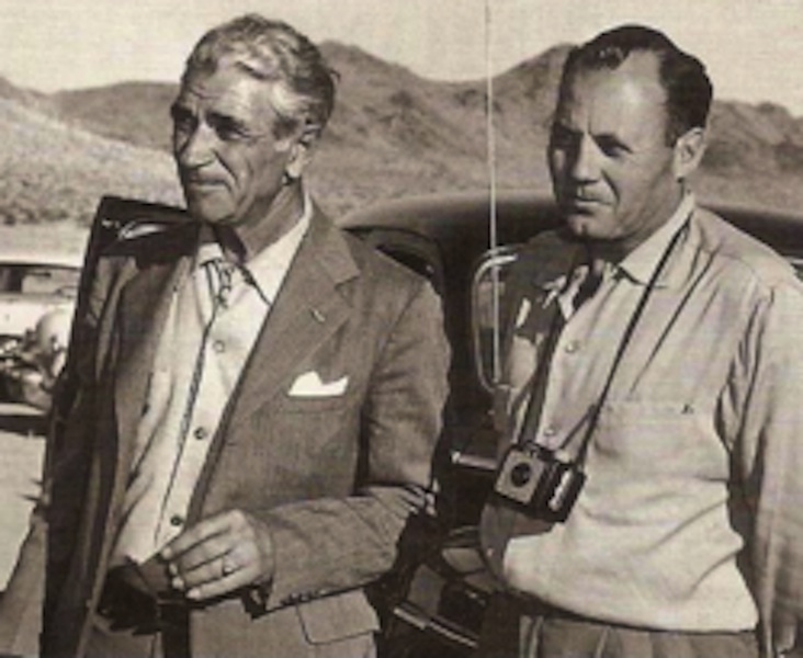 LEFT: George Adamski visiting the GIANT ROCK UFO convention in 1957. Adamski was a supposed UFO contact. BELOW: is his 1955 speech at the GIANT ROCK.
