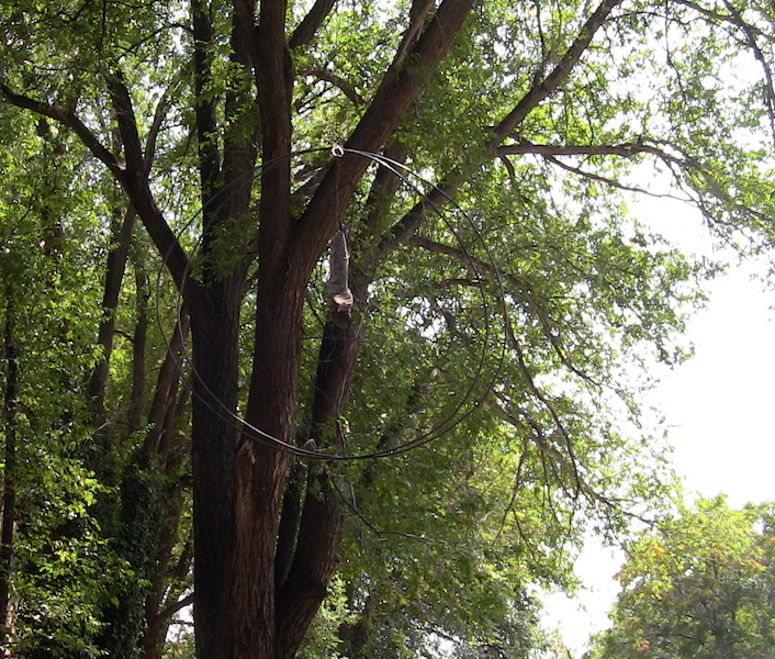 Note how high this odd stones are, who is going to climb up there and set them in place? Again, is this art by way of some person with strange tastes? Or are the weird beards correct, this is OCCULT art, symbols for bad MOJO? Below; LA-LLORNA-PATH or whatever one wants to call it, this design or object is dangling from a tree limb.