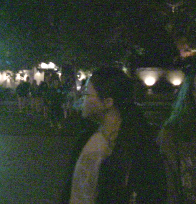 ABOVE: COLD WINTER NIGHT: This female ghost hunter is bundled up in one of AL PACHECO's emergency NASA blankets. She is looking back toward the BLAIR WITCH SANTA FE area, that intersects Spook Lane or the LA-LLORNA-PATH. This lady on my tour got the bad mojo vibe, then her temperature failed her. Thus the emergency gear, it does not look like much, but it works. COLD NIGHT AND GHOST CONTACT. Exit body warmth.