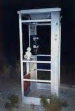 PERHAPS THE MOJAVE-PHONE-BOOTH GOT ITS DAFT SPIRIT FROM ITS LOCATION. I tend to BELIEVE THE MOJO THAT WAS OMITTED FROM THOSE WHO PHONED IN OR CALLED OUT, ADDED TO THE MAGIC THAT WAS AT THIS LOCALE. ACCORDING TO LORE-FACT-LEGEND-LIES-HALF TRUTHS- THE MOJAVE-PHONE-BOOTH WAS PUT IN PLACE CIRCA 1970 -- SOME ARM CHAIR EXPERTS AND NOW PASSED ON DESERT RATS, CLAIM THAT IN 1961, THE PHONE AND BOOTH WERE PUT IN PLACE. I SAY -- EL WRONGO! ONE THEME ---HAS THE PHONE, NOT THE BOOTH BEING INSTALLED IN 1942. AT MINIMUM THE TELEPHONE LINES AND POLES THAT CONNECTED THE PHONE AND LATER THE MOJAVE-PHONE-BOOTH, TO THE REST OF THE WORLD WERE POSTED IN 1942. WHY, 1942? DUE TO WORLD WAR II. THE PHONE LINE WAS A PRECAUTION, THE WAR DEPARTMENT - FEDS, WANTED A CIRCUIT THAT WOULD WORK (BACKUP) IN CASE THE CALIFORNIA COAST LINES WERE SEVERED, BY WAY OF A JAPANESE ATTACK. THE MOJAVE PHONE WAS ORIGINALLY POWERED BY A HAND CRANK DYNAMO. -------- NO MONEY WAS NEEDED TO USE IT. THE PHONE CALL WOULD BE DIRECTED TO AN OPERATOR, FROM THERE THE CALLER WOULD BE CONNECTED TO WHO HE WISHED TO SPEAK TO. MYTH, LIES, FACTS, HAS THE ORIGINAL DESERT PHONE INSIDE A WOODEN BOX THAT WAS ATTACHED TO A WOODEN POLE. A GUNNY SACK LIKE MATERIAL COVERED THE WOODEN BOX's FRONT AREA. FROM THE 1960s ONWARD (MID 1960s -EXACT DATE IS HAZY) THE PHONE-BOOTH WAS INSTALLED AND NOW THERE WAS A PAY PHONE-- IN THE MIDDLE OF NOWHERE, INSIDE A GLASS AND ALUMINUM PHONE BOX -- YES! A PAY PHONE IN THE MIDDLE OF THE MOJAVE ENCLOSED A CLARK KENT TYPE OF PHONE CUBICLE! OTHER YARNS HAVE ITTHE MOJAVE-PHONE-BOOTH CAME INTO EXISTENCE IN 1986 OR 1976. THERE ARE A LOT OF BOGUS COMPETING TALES CONCERNING THIS UNIQUE PHONE BOOTH. WHAT IS FACT, BEFORE THE TELEPHONE WAS MODERNIZED (NO CRANK DYNAMO), ONE COULD PICK UP THE RECEIVER AND CALL THE OPERATOR IN SAN BERNARDINO, CALIFORNIA AND SHE WOULD DIRECT YOUR CALL. WHEN THE PHONE BECAME A PAY FOR YOUR CALL TYPE SERVICE, AS IN PUT MONEY INTO THE COIN SLOT AND THE OPERATOR WOULD CONNECT YOU TO THE NUBER YOU WANTED, SUPPOSEDLY THAT WAS WHEN THE PHONE BECAME ENCLOSED WITH A MODERN STEEL AND GLASS FRAME A.K.A. THE-MOJAVE-PHONE-BOOTH. "CAPITALISM BABY", X AMOUNT OF YEARS AFER WORLD WAR II, THE PHONE GOES FROM TRUNK OPERATOR CALLS TO PAY PHONE. THIS PHONE OUT IN THE MIDDLE OF NOWHERE -- GRABBED MY ATTENTION, OR I FIRST HEARD ABOUT THE MOJAVE-PHONE-BOOTH IF MEMORY SERVES, IN OCTOBER 1965, AS I WAS HEADED FOR CALIFORNIA, ON OLD WONDERFUL ROUTE 66. THE IDEA THAT A DEHYDRATED PERSON STRANDED IN THE OUTBACK, HIS VEHICLE BROKEN DOWN, AND ALL HE HAS TO DO IS GET TO THE DESERT PHONE AND HELP IS ON THE WAY, SOUNDED LIKE A GRAND IDEA. THE PHONE DURING THIS ERA WAS LABELED A TOLL PHONE, THEN IT BECAME A DIAL PHONE. THE DIFFERENCE IN TERMS, IS THAT ONE REQUIRES AN OPERATOR, THE OTHER DOES NOT, BUT BOTH PHONES COST -- AS IN - CLICK -CLICK- CHANGE INTO THE MACHINE, FOR THE DEVICE TO WORK. FOR AN EMERGENCY -- ONE WOULD DIAL "O", AND THE VOICE ON THE OTHER END WOULD CONECT YOU TO THE POLICE OR HOSPITAL. THE 911 EMERGENCY NUMBER DID NOT BECOME THE S.O.S. MONIKER UNTIL THE 1970s AND ONWARD. AT THE TIME WHEN THE MOJAVE-PHONE-BOOTH WAS POSTED UP, AND THIS WAS PRETTY MUCH TRUE THROUGH ALL OF ITS EXISTENCE --- THE DESERT PHONE WAS ABOUT 18 MILES FROM A PAVED ROAD OR HIGHWAY. FROM THE LATE 1970s ONWARD--CIVILIZATION STARED TO CREEPING INTO THE DESERT. TO GET TO THE DESERT PHONE, ONE COULD DRIVE UNDER A LINE OF TELEPHONE POLES ATOP AN OVERGROWN SERVICE PATH. IT WAS A JEEP - MOTORBIKE, TYPE LANE. ANOTHER ROUTE FOR BIKERS WAS TO TRAVEL A FEW ARROYOS OR SAND GULLIES THAT WOULD MEET UP WITH A ROUGH ROAD, WHICH LEED TO THE MOJAVE-PHONE-BOOTH. %99 OF THE PILGRIMS THAT REACHED THE ICON-PHONE BOOTH, TOOK THE BUMPY TRACK. AS THE SECRET GOT OUT ABOUT THIS ISOLATED PHONE BOX, THE DESERT ROAD BECAME MUCH EASIER TO TRAVEL. VEHICULAR TRAFFIC PACKED DOWN THE EARTH AND IN CERTAIN AREAS, THE WIDTH OF THE LANE WAS EXPANDED. LIKEWISE, THE AREA AROUND THE MOJAVE-PHONE-BOOTH BECAME LESS WILD, AND MORE BAREN. FOR A BRIEF WHILE IN THE 1970s, HUEY MILITARY HELICOPTERS USED TO FY THE AREA. THE BAD JOKE WAS, THE CRAFT WERE PART OF AN INVESTIGATION. THE MOJAVE-PHONE-BOOTH WAS A DOORWAY TO ANOTHER REALM. MORE THAN LIKELY, THE HUEYS WERE GETTING A BEARING OR ON AN EXERCISE. THROUGH THE AGES, HUMOROUS MESSAGES WERE SCRAWLED ON THE MOJAVE-PHONE-BOOTH ABOUT BEING ABDUCTED BY ALIENS OR MIBs (MEN IN BACK). IN MANY WAYS, THE MOJAVE-PHONE-BOOTH WAS A PORTAL TO ANOTHER REALM, BY WAY OF WHO WAS ON THE END OF THE LONG DISTANCE LINE. BEFORE YOU GO ANY FURTHER -- KNOW THAT THE MOJAVE-PHONE-BOOTH NO LONGER EXISTS. I WOULD LIKE TO THINK IT DEMATERIALIZED INTO A WORLD OF HAPPINESS AND JOY. THE PHONE AND CUBICLE WAS TAKEN AWAY BY THE PHONE COMPANY MANY YEARS AGO. TO BE EXACT, WEDNESDAY MORNING, MAY 17, 2000. RUMOR HAS IT THE MOJAVE-PHONE-BOOTH WAS THEN DESTROYED BY THE BLM BUREAU of LAND MANAGEMENT MEANIES OR BY CALIFORNIA BELL (MA BELL) PHONE COPS. OFFICIALLY THE PHONE WAS REGISTERED AS THE CINDER MINE TELEPHONE AND ITS LOCATION WAS ON CINDER MINE ROAD OR AIKEN CINDER MINE ROAD (CIMA MINE RD.). THE MOJAVE-PHONE-BOOTH AND ROAD HAD MANY NICKNAMES. ![]() |