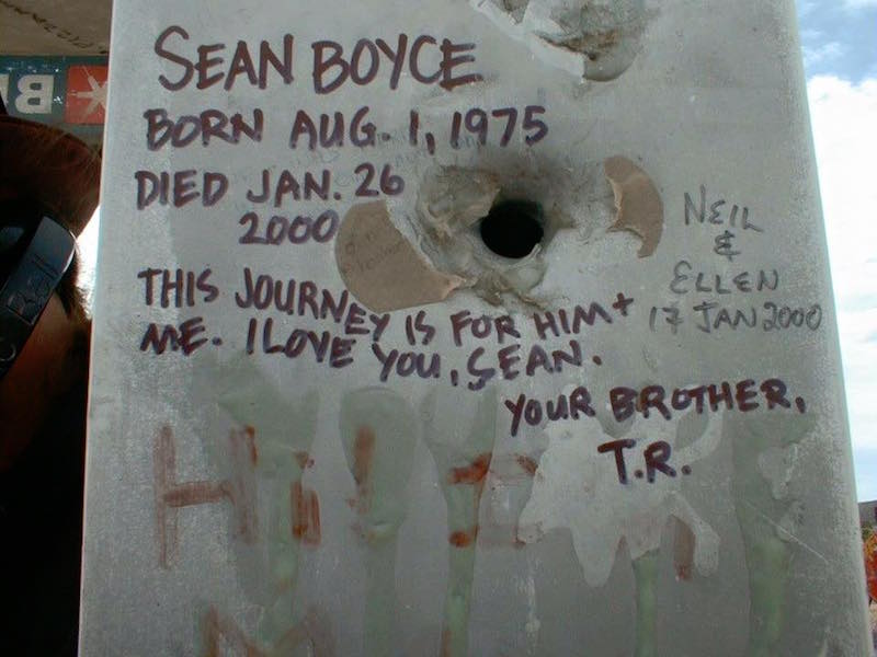ABOVE & RIGHT -- & BELOW RIGHT -- NOTE -- SOME OF THE GRAFFITI HAS BEEN REPLACED -- BE IT BY WEATHER OR PILGRIMS. THE "I WAS HERE" MESSAGES -- ADDED TO THE ENERGY OF THE CULT ICON.