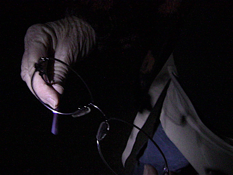 BELOW: Sometimes the oddest things happen on Allan Pacheco's Ghost Moon Tours -- a little farther down from the haunted Lamy building area --- IN ANOTHER HAUNTED LOCATION --- this lady lost her lens... Coincidence? Maybe --- but this woman had all kinds of hits on her GHOSTOMETER....