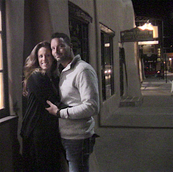 Below -- Another happy romance on tour. Or, a happy romantic couple on tour, in the PLAZA -- late night.