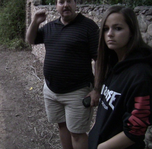 Most of the time, the lanes or paths are free from incident, on occasion, even during the day, a vibe is felt. Sometimes, day or night thaaaaaaaaaangs are photographed. You never can tell on ALLAN's tours, bring your camera! This fellow and daughter felt a presence. |