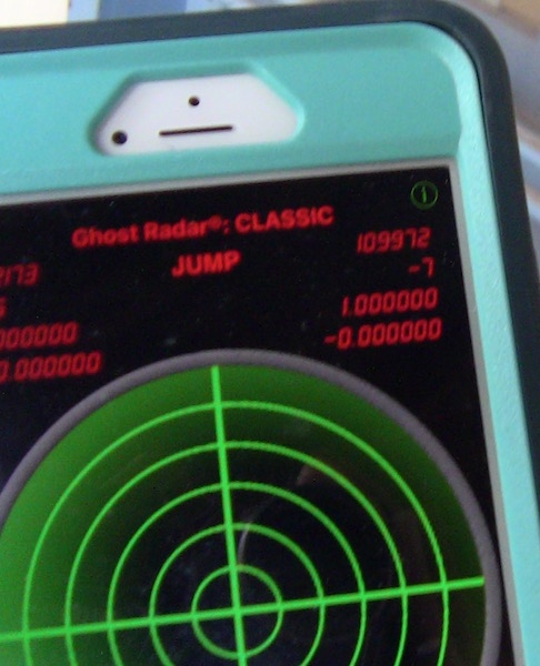 Below: On a daytime ghost tour --- at a haunted mansion on a veranda that is known as the BETTI DAVIS BALCONY --- the ghostometer flashed this -- "JUMP" as Allan was telling his tour group tales of the place and what his investigations have uncovered --- on your paranormal safari bring your ghost cadets -- be it inexpensive apps or state of the art equipment --- then -- then -- then after this message came through Allan got a darn good shock!! ZAP --- Sometimes on your ghost tour contact is made -- 505-986-5002 book a ghost tour.