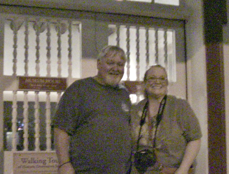 BELOW: At the end of a night tour at the PALACE OF THE GOVERNORS, this Louisiana husband and wife -- Mickey and Robin had a wonderful time touring with ALLAN... 505-986-5002