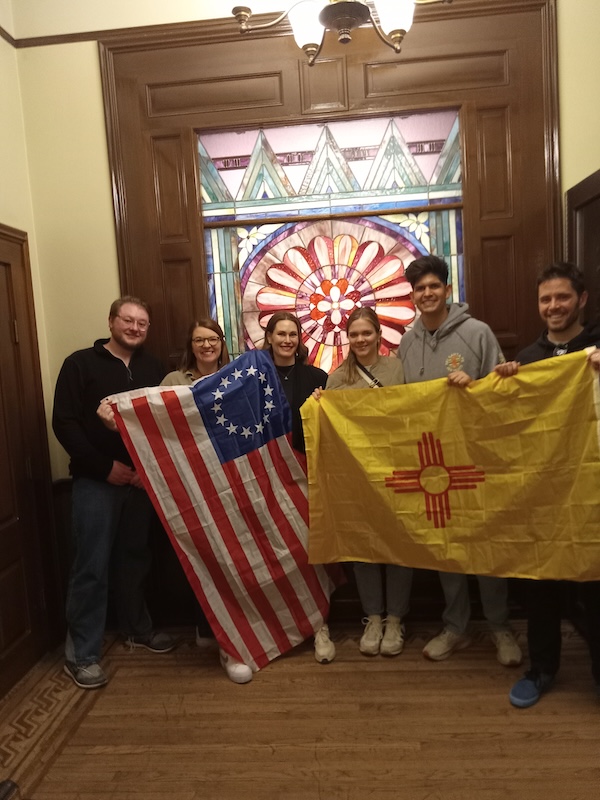 Below -- at the end of a tour, some happy faces, that were glad that they went on a SANTA-FE-WITCHES tour with metaphysician AL PACHECO. The photo was taken in the haunted LA POSADA resort, which used to be the mansion of GANGSTER MAN = ABRAHAM STAAB. He was the AL CAPONE OF NEW MEXICO TERRITORY during Wild West days.