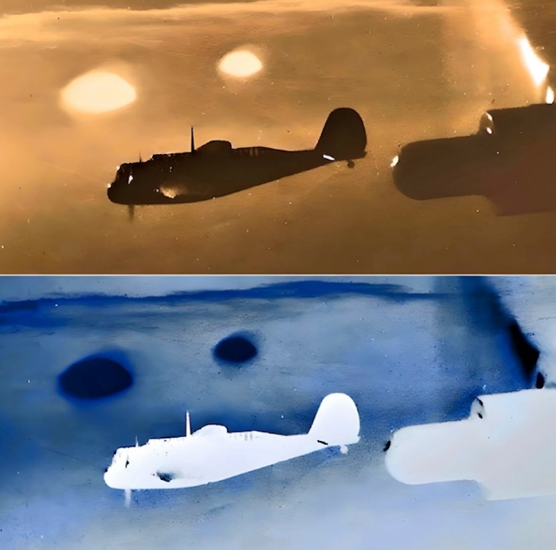 The black-and-white footage is a one-of-a-kind collection of Air Force film and photos, including a shot of a fully outfitted dummy called "Sierra Sam" standing upright with his arms outstretched over the shoulders of two officers.