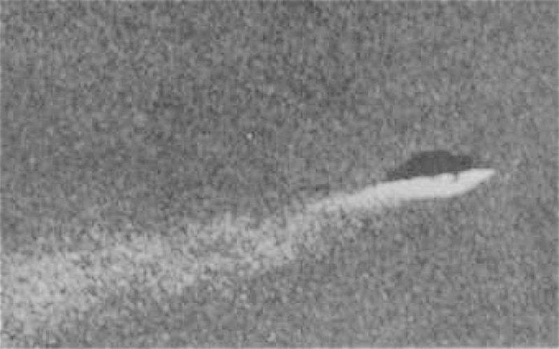 Around 7:30 PM a workman in Namur Belgium, June 5, 1955, took the above and below photos of a UFO that made no noise. The Flying saucer was seen by many witnesses, it omitted a white smoke trail. As the craft flew through sky, it lost altitude (PURPOSELY OR NOT), then reversed its course and flew back up into its contrail of smoke or ionization? According to the photographer, the craft had four landing pylons under its belly. What does that mean -- had the spaceship just recently landed on Earth for reasons unknown or the vessel was experiencing mechanical difficulties and that is why the landing legs were extended? Or did the craft not have retractable landing gear, or was the witness confused and there were no extensions? The UFO's color was thought to be a bright silver - gray color. Aliens or Mysterians --- whatever their label is -- what are they doing on planet Earth, and why do they let themselves be seen?