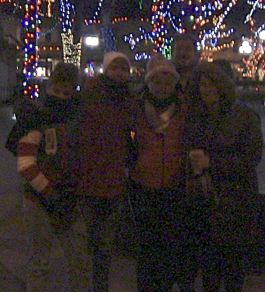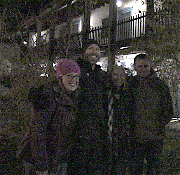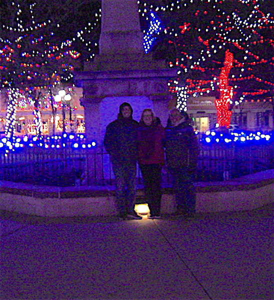 BELOW: On old ROUTE 66 --- this tour visited where the MOTHER ROAD went through the plaza -- December Christmas Lights, standing on the old highway, with traffic passing by, holding onto a RT 66 banner, this was a wonderful paranormal tour with some history thrown in. WINTER-GHOST-TOUR-SANTA-FE --- book one 505 986 5002 --- GET YOUR KICKS ON ROUTE 66! Yes your tour does walk by and sometimes over that famous road.